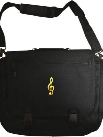 Delux Expandable Briefcase, Black with Gold Treble Clef