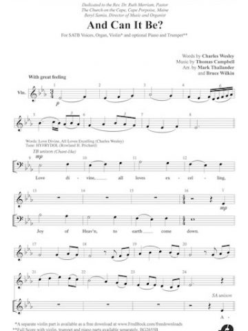 And Can It Be? – SATB Organ, Violin & opt. Piano, and Trumpet