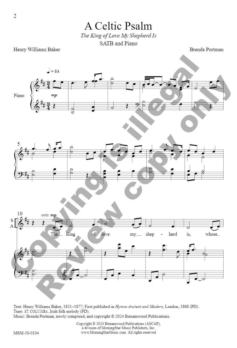A lovely and flowing setting of the wonderful ST. COLUMBA tune matched with the familiar Henry Williams Baker text based on Psalm 23. Set in a Celtic style.