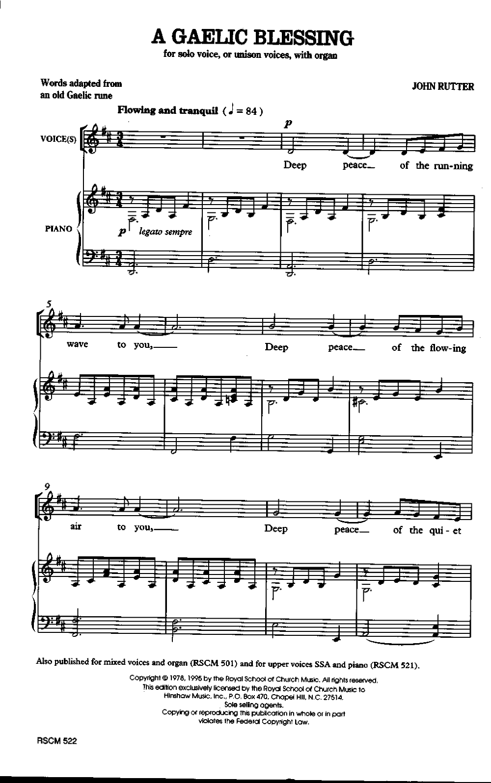 John Rutter's enduringly popular setting of William Sharp's uplifting words is serene, tender, and beautiful in its simplicity.