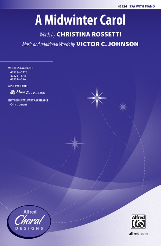 Christina Rossetti's beloved “In the Bleak Midwinter” sings beautifully in this lovely setting for expressive choirs. The meaningful text and breathtaking music are worthy of artistic interpretation. A gracefully supportive piano contributes a few soloistic flourishes and an optional C-instrument (oboe on our recording) adds a gentle obbligato.