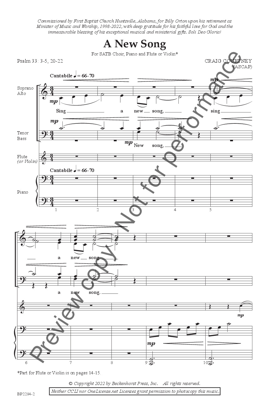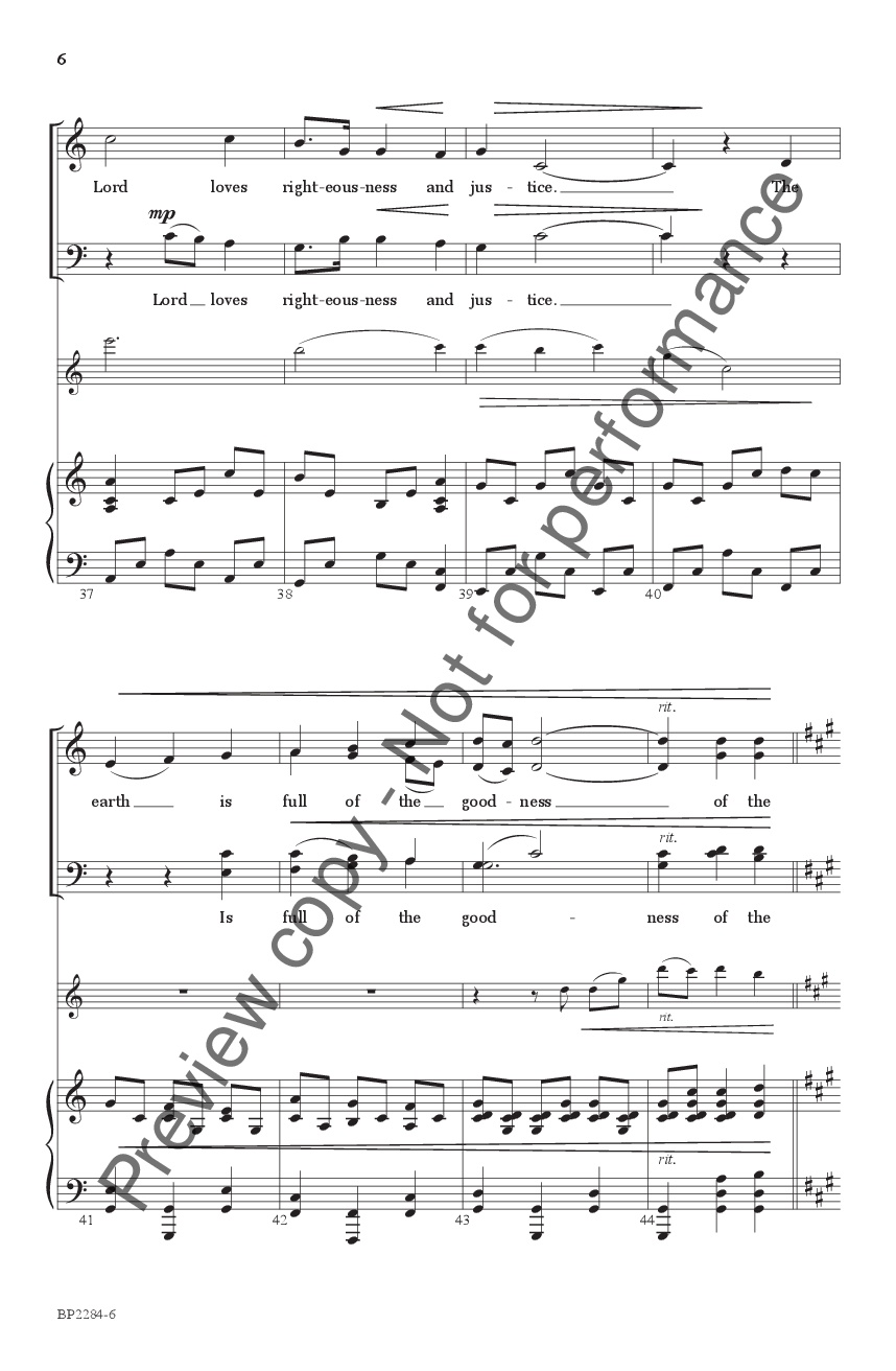 Craig Courtney sets words from Psalm 33 for SATB choir and piano with optional flute or violin. Text including “the earth is full of the goodness of the Lord” is then painted by floating instrumental quotes of LASST UNS ERFREUEN, before the anthem closes with an a cappella prayer for God's blessing.