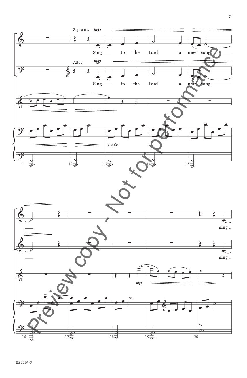 The compositional process of each piece I write is unique. I often hit road bumps that require time and effort to overcome. In the case of A New Song, the refrain which opens that octavo came easily. My goal was to make it expansive and allow it to take its time to unfold. Likewise, the verses which contain the bulk of the Psalm text came without a lot of effort. But as it neared completion, I felt that something was lacking – a unifying element that would tie the piece together. It felt like cooking a stew and realizing that a spice was missing — one that eluded you. It took some time for me to discover that the flute or violin could play phrases from All Creatures of Our God and King, providing musical “comments” to the choir (which never actually sings the hymn), adding another dimension of meaning and historical grounding.