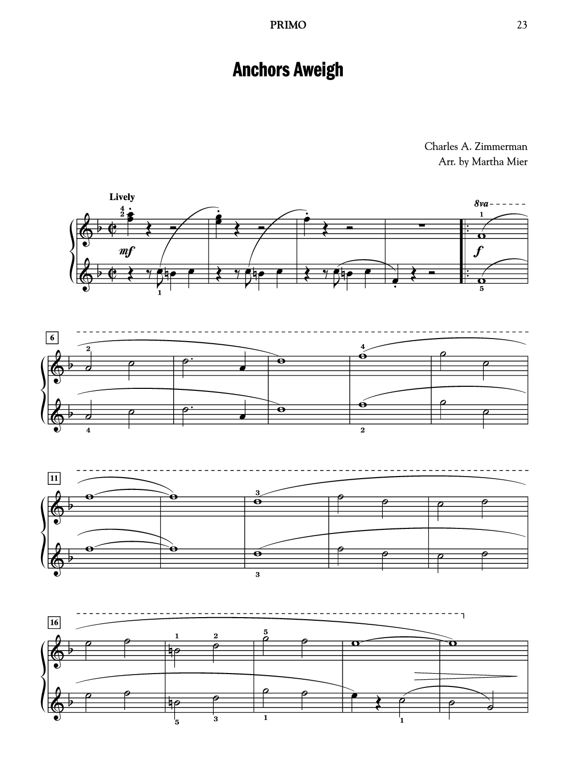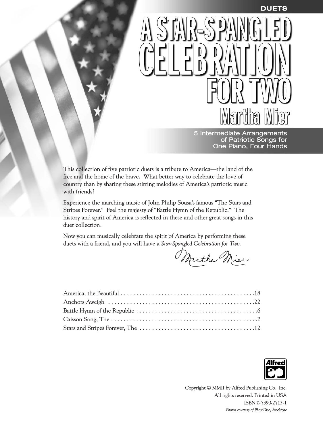 Experience the marching music of John Philip Sousa's “The Stars and Stripes Forever” or feel the majesty of “Battle Hymn of the Republic.” This collection of five patriotic duets is a tribute to America-the land of the free and the home of the brave. What better way to celebrate the love of country than by sharing these stirring melodies of America's patriotic music with friends.
