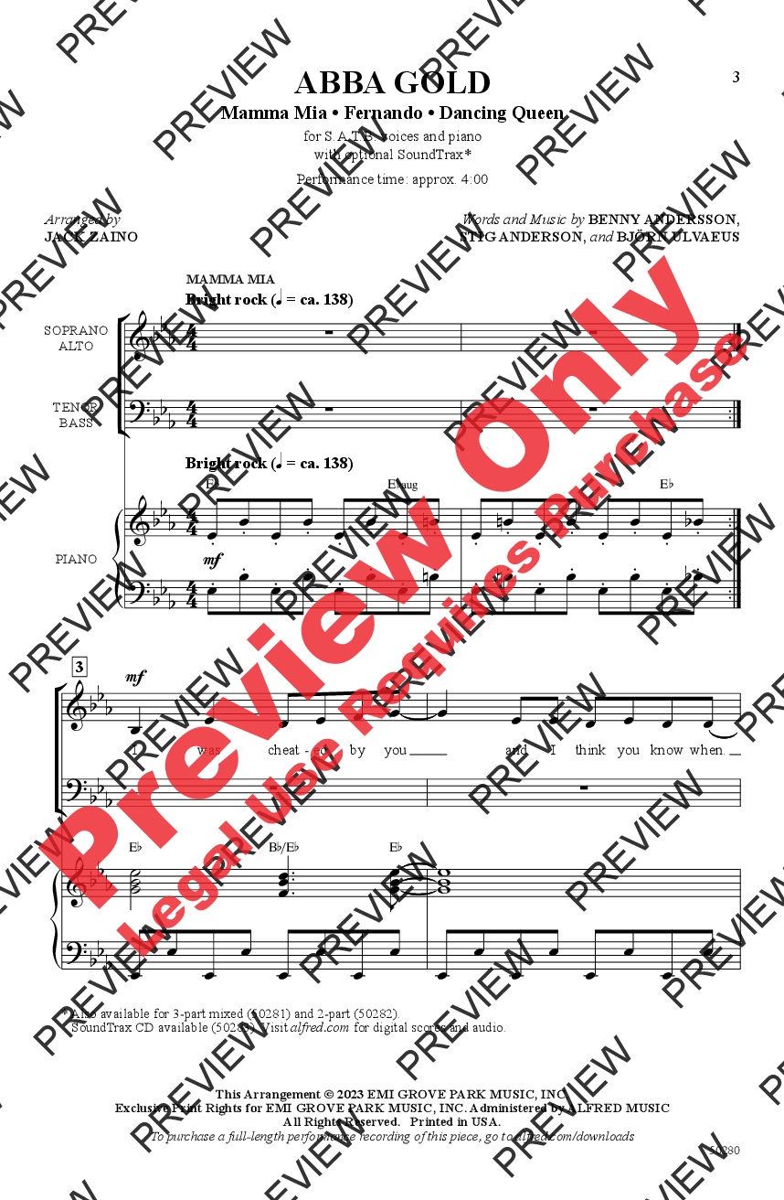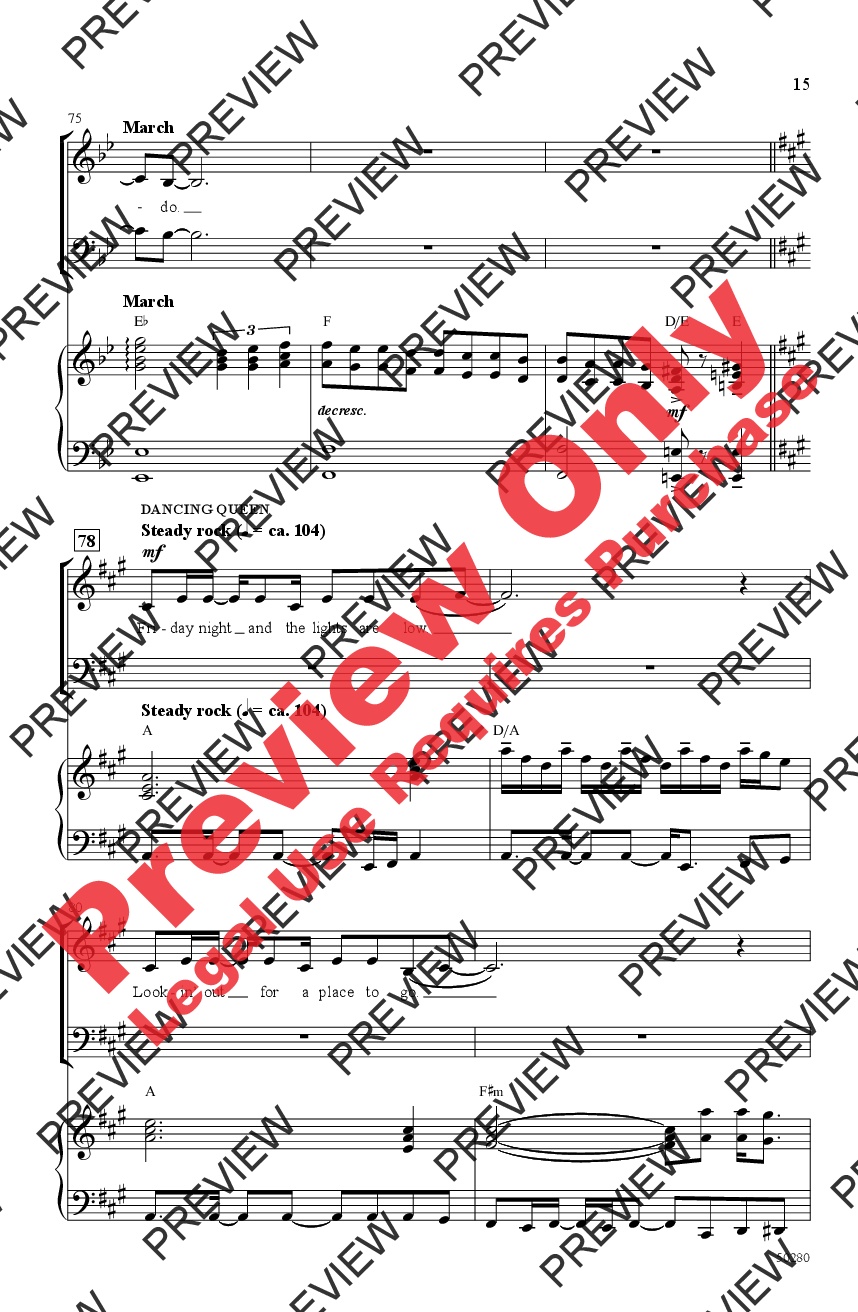 The legendary Swedish pop group created one of the best-selling albums of all time with ABBA Gold. Featuring three of its most memorable songs, this fast-paced mini-medley is a blast from the first iconic “Mamma Mia” hook to the final “Dancing Queen” flourish. A variety of voicings bring this fabulous feature to choirs of any age.