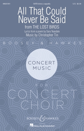 With a simple melody inspired by children's songs, “All That Could Never Be Said” is a setting of Sara Teasdale's poem “In the End”. Showcasing her signature pairing of nihilism and pastoral beauty, the poem is an exploration of regret: it suggests that the consequences of our inaction are final and absolute. There are no second chances to speak up or to act, and all our missed opportunities will be lost to us until we're reunited with them in death.