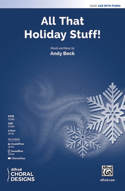 An opening solo sets the stage for what unfurls into a pizzazzy listicle of holiday decorations, characters, treats, attire . . . stuff! Andy's musical theater style shines from the moment the curtain parts to the final kickline. This holiday showstopper that craves choreography, so check out the free ChoreoTrax or design your own razzmatazz routine. A sparkling, twinkling gem of jolly that pulls out all the stops!