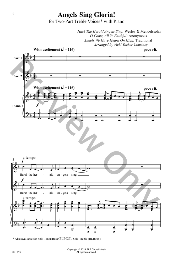 Courtney has crafted a winning “mash-up” with Hark the Herald Angels Sing, O Come All Ye Faithful, and Angels We Have Heard on High.