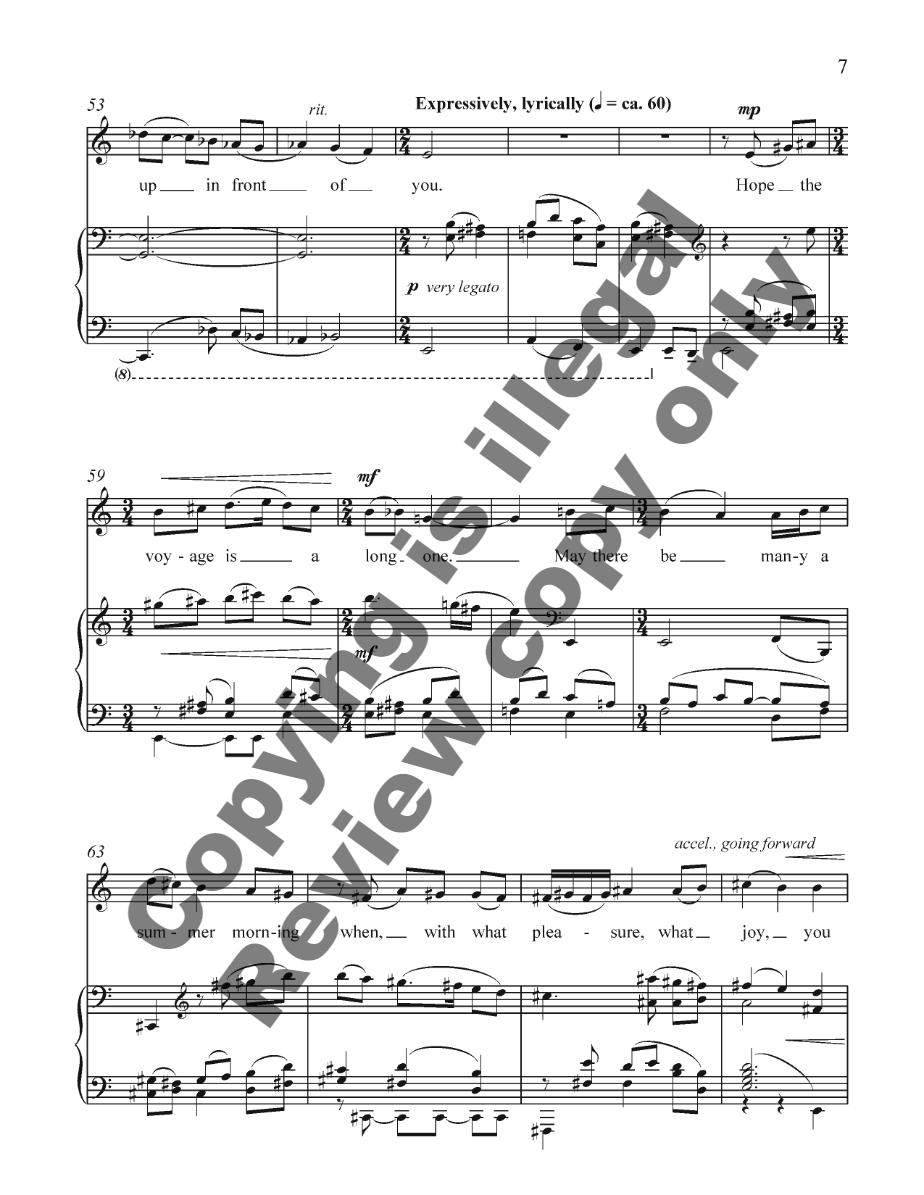 As you set out for Ithaka is a rhapsody, or extended piece, held together by recurring musical ideas. While the poet may be addressing a certain person, perhaps someone from Greek mythology, he might also be wishing any traveler well, hoping as he states, that the “voyage is a long one, full of adventure, full of discovery.” Without question, the traveler should expect a journey replete with exoticism, a degree of danger, and great beauty.
