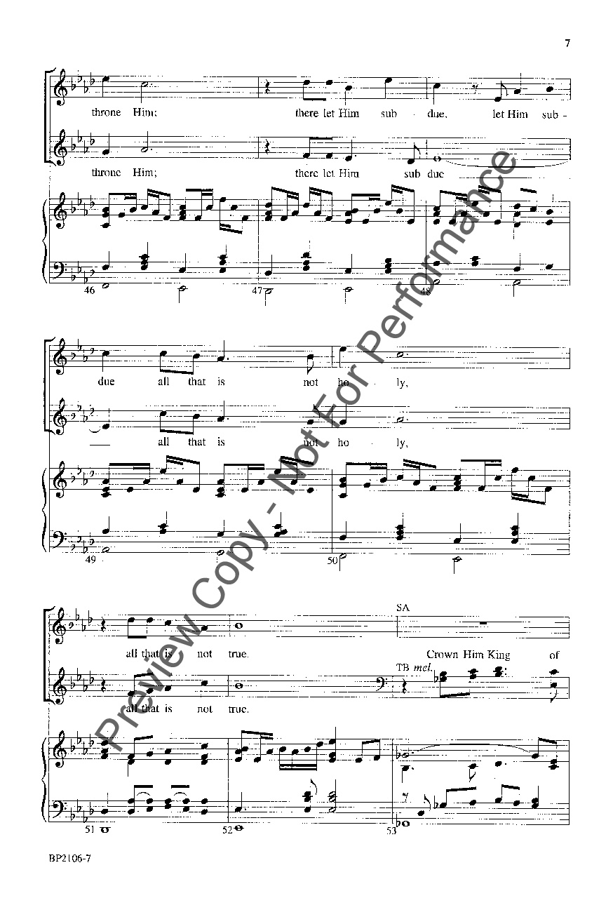 A strong, resolute setting of the classic hymn, scored for SATB Choir and Organ or Piano, incorporating ALL HAIL THE POWER OF JESUS NAME for optional congregation participation. The setting is well within the reach of the average church choir and will make a powerful statement in any service of worship.