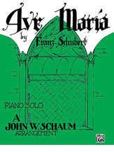Schaum level 1. Here is a beautiful intermediate level arrangement of Schubert's famous version of Ave Maria, in F Major, 3/4 time. The right hand sings the melody throughout against a left hand part which is in quarter-note broken chord style in an easily manageable hand postion. There are crescendo and diminuendo dynamics, and an overlapping pedal style.