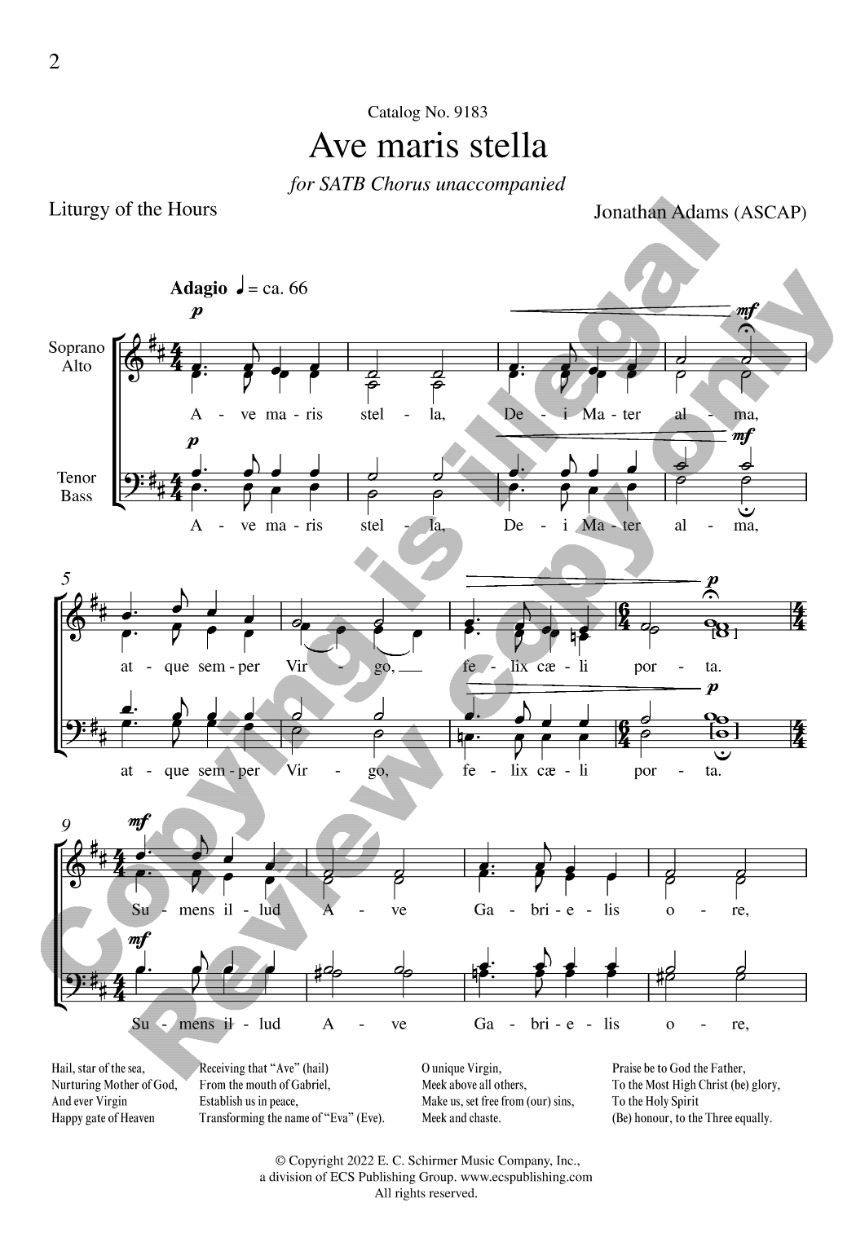 A beautiful setting that captures the essence of the Ave Maris Stella text. This work is a rewarding challenge for advanced choirs and audiences.