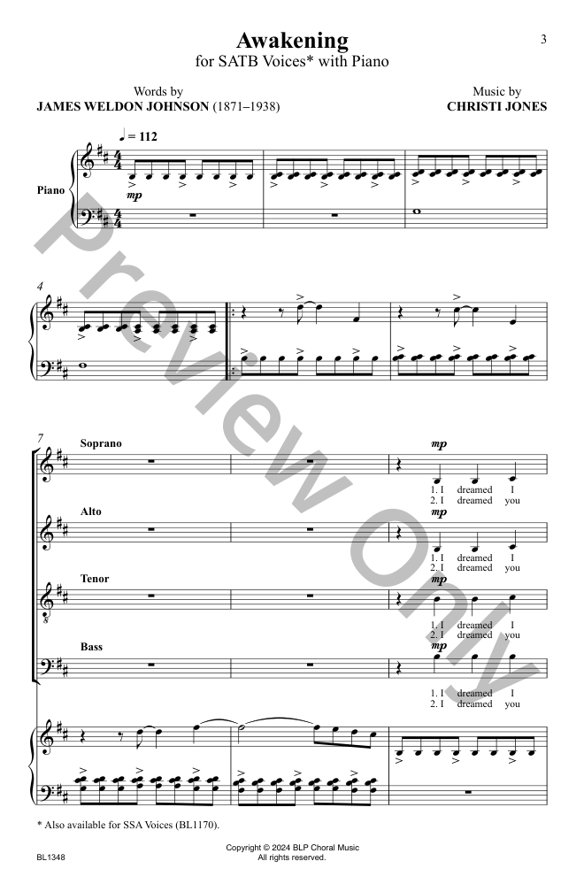 Based on the inspirational poem by civil rights advocate James Weldon Johnson, this selection features beautiful cluster chords over a driving syncopation that your choirs will love. With a mature quality that is not too difficult to achieve, this piece will certainly empower your singers!