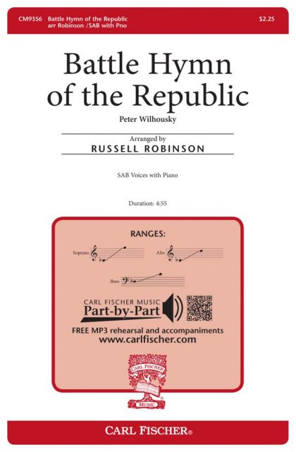 One of the most popular patriotic pieces ever written, Russell Robinson's SAB arrangement now makes Battle Hymn of the Republic accessible to ensembles of all sizes. Although scored for piano accompaniment, it is even more thrilling to perform with the orchestral or band accompaniment.