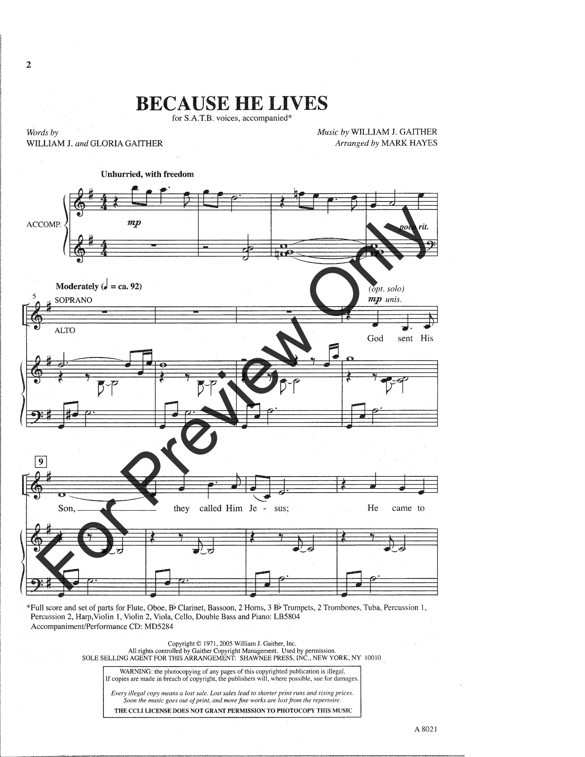 Rarely has a song had such impact with the sacred culture than with this wonderful gospel ballad. Master arranger Mark Hayes has takes Bill and Gloria Gaither's classic and infused it with renewed power and joy.