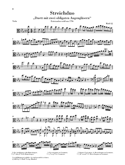 Beethoven probably originally planned a complete string duo with four movements. Aside from the introductory movement, a minuet has also survived that is likewise published here. This single edition, taken from the established volume “String Trios and String Duos”, will certainly secure many new friends for this original work.