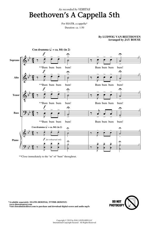 Set for a cappella voices for both men's and mixed choirs, this absolutely inspiring choral captures the genius of Beethoven's work through vocal range, style and drama as well as a lot of humor with solo opportunities. Challenging and rewarding!