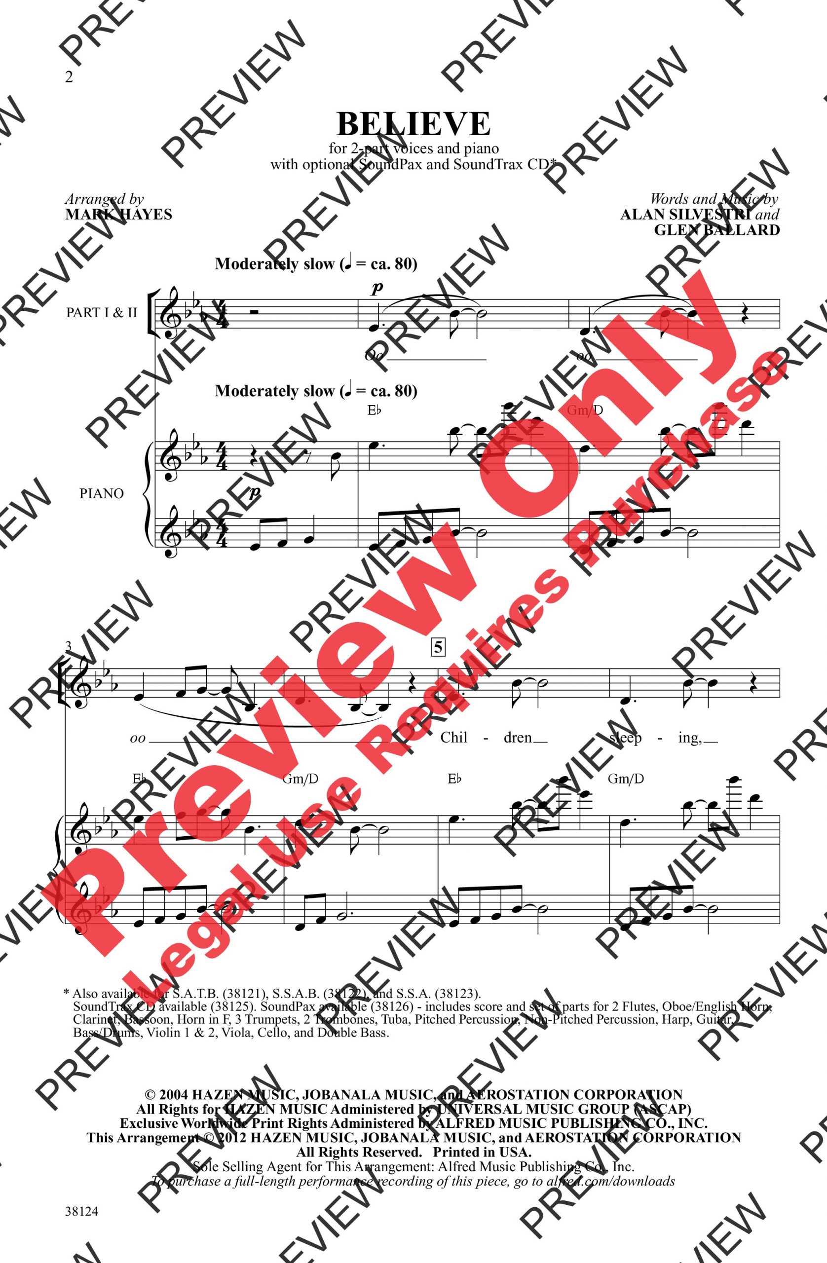 The spirit of the season comes alive in this unbelievably fantastic holiday hit from The Polar Express. Originally recorded by Josh Groban, the magical ballad has grown in popularity to become recognizable worldwide. Fully arranged by Mark Hayes for choirs of all sizes and ages.