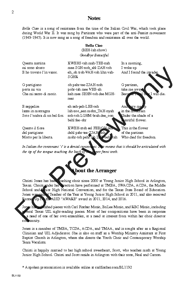 Jones has masterfully created an Italian song for emerging choirs that affords an introduction to limited Italian text in a fun, accessible setting. Well worth the effort, whether performed with piano or optional a cappella.