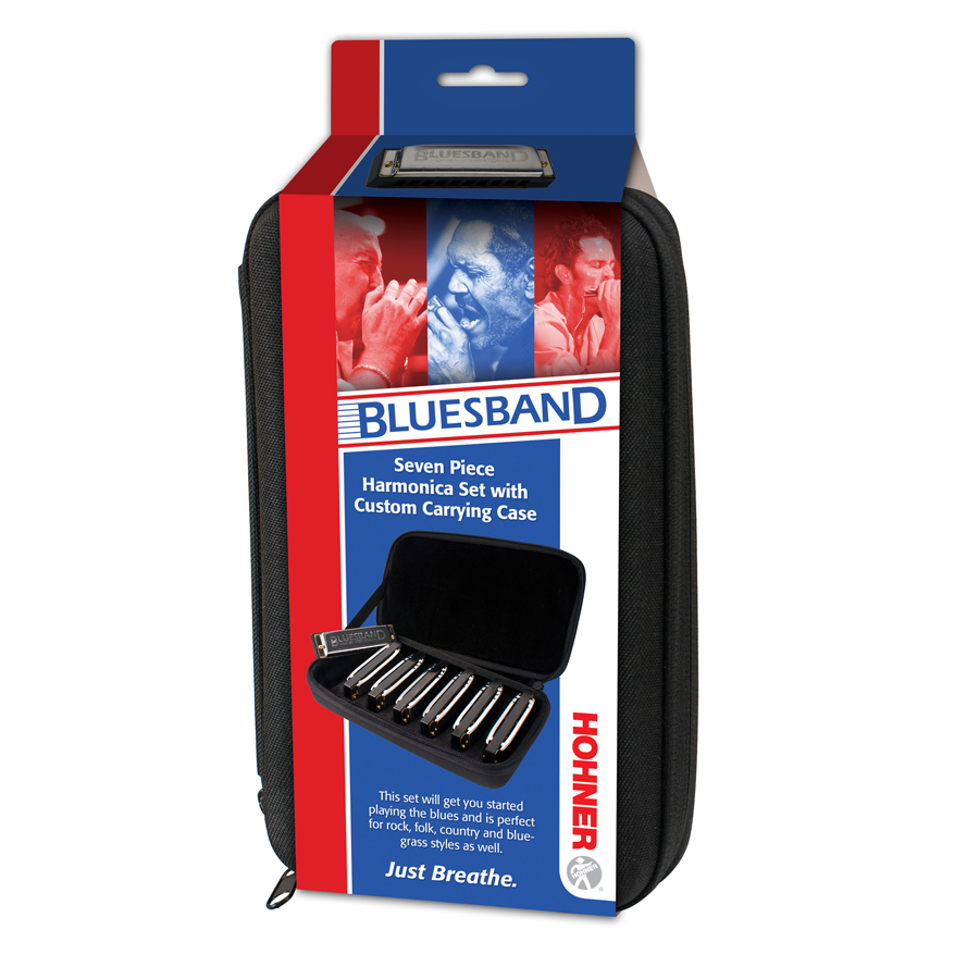 Durable seven slotted neoprene case includes seven Blues Band harmonicas in the keys of G,A,Bb,C,D,E,F. Blow the blues with the Hohner Blues Band! Easy to play and ideal for beginners or anyone looking for a durable harp on a tight budget.