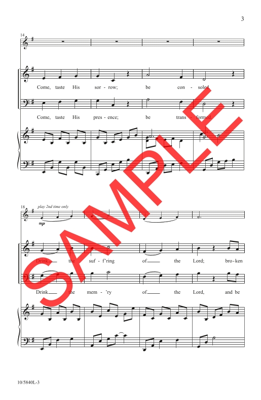 Poignant lyrics combined with a haunting and memorable tune provide the basis for this versatile and meaningful communion anthem. Suitable for use during Holy Week or anytime throughout the year, this will be an anthem to return to often.