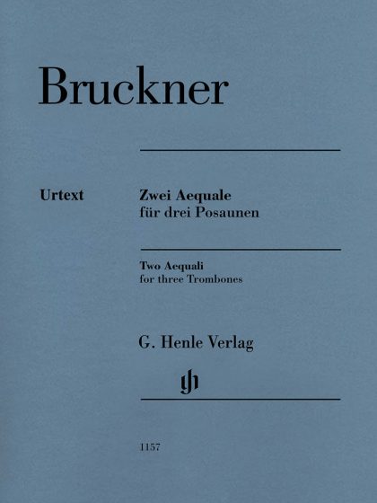 These two Aequali for three trombones are really works of Bruckner's youth, for he was only 22 years old when he composed them for the funeral of his great-aunt in January 1847. He was at that time a school assistant at the St Florian Monastery near Linz. In spite of the pieces' early date, the romantic, expressive harmonies of the two brief Aequale already reveal the “true” Bruckner, andlook forwards to the chorale-like trombone passages in his later symphonies. Together with Beethoven's Three Equali for four trombones WoO 30 (HN 1151) they are among the classics of the trombone repertoire. This Henle Urtext edition is based on the autograph sources in the monastery libraries of St Florian and Seitenstetten. The bass trombone part for the second Aequale is no longer extant, so we here offer a suggested reconstruction to enable the work to be performed.