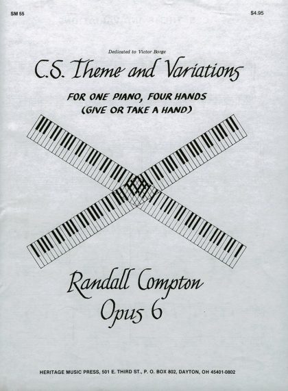Dedicated to Victor Borge and in the style of his parodies at the piano, this piece for one piano, four hands is a lot of fun to play. C.S. stands for Chopsticks, the theme upon which the entire piece is based. Primo and secondo change positions in the middle of the piece, as the secondo player ascends all the way up the keyboard. A sure hit with audiences, C.S. Theme and Variations will lighten up any concert and makes a great encore.