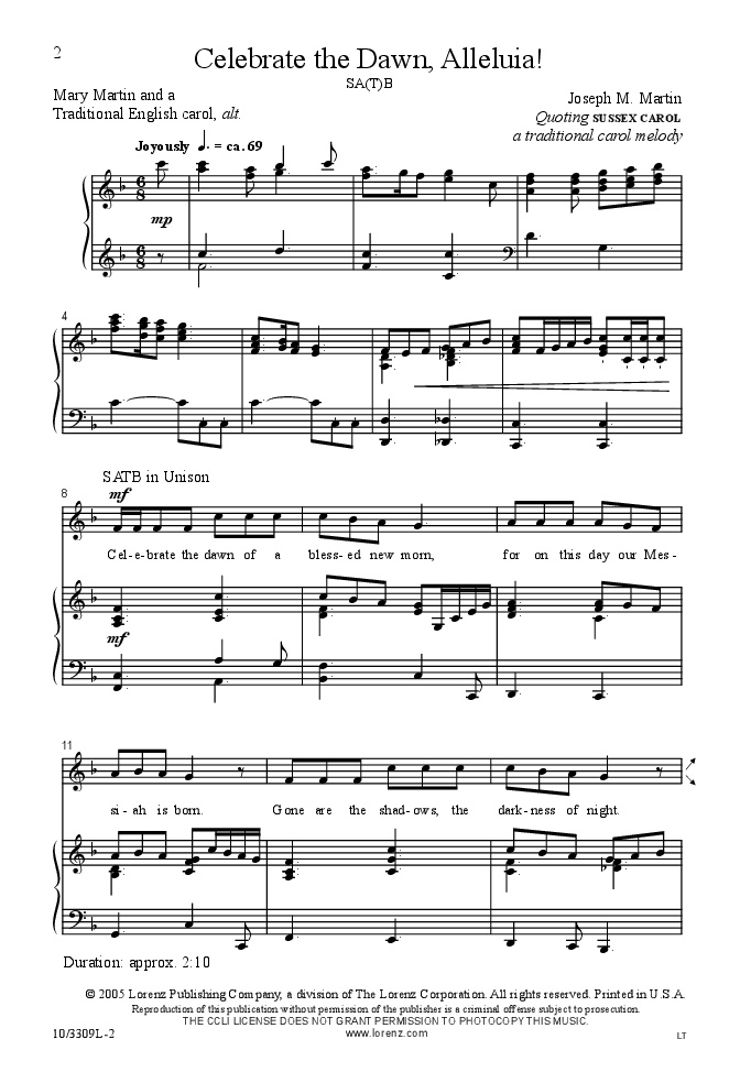 This flexibly-voiced proclamation of joy celebrates the light that now shines on all humanity because Jesus has been born.