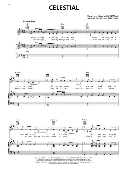 This collection features 14 of today's hottest hits arranged for piano and voice with guitar chord frames.