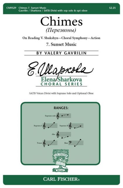 Sharkova brings a third selection from Gavrilin's massive work Chimes to better choirs. Sunset Music features a consistent bell-like 5/4 rhythm in the lower voices, with a simple and lovely ringing melody in the higher range. The music builds to a forte clanging, before dying away into silence. Text is onomatopoeic syllables (“din don don” or a sustained “bom,” etc.), and the optional (although recommended) oboe part is available as a free download. See a performance on YouTube: https://www.youtube.com/watch?v=XbOECr6Ykl8