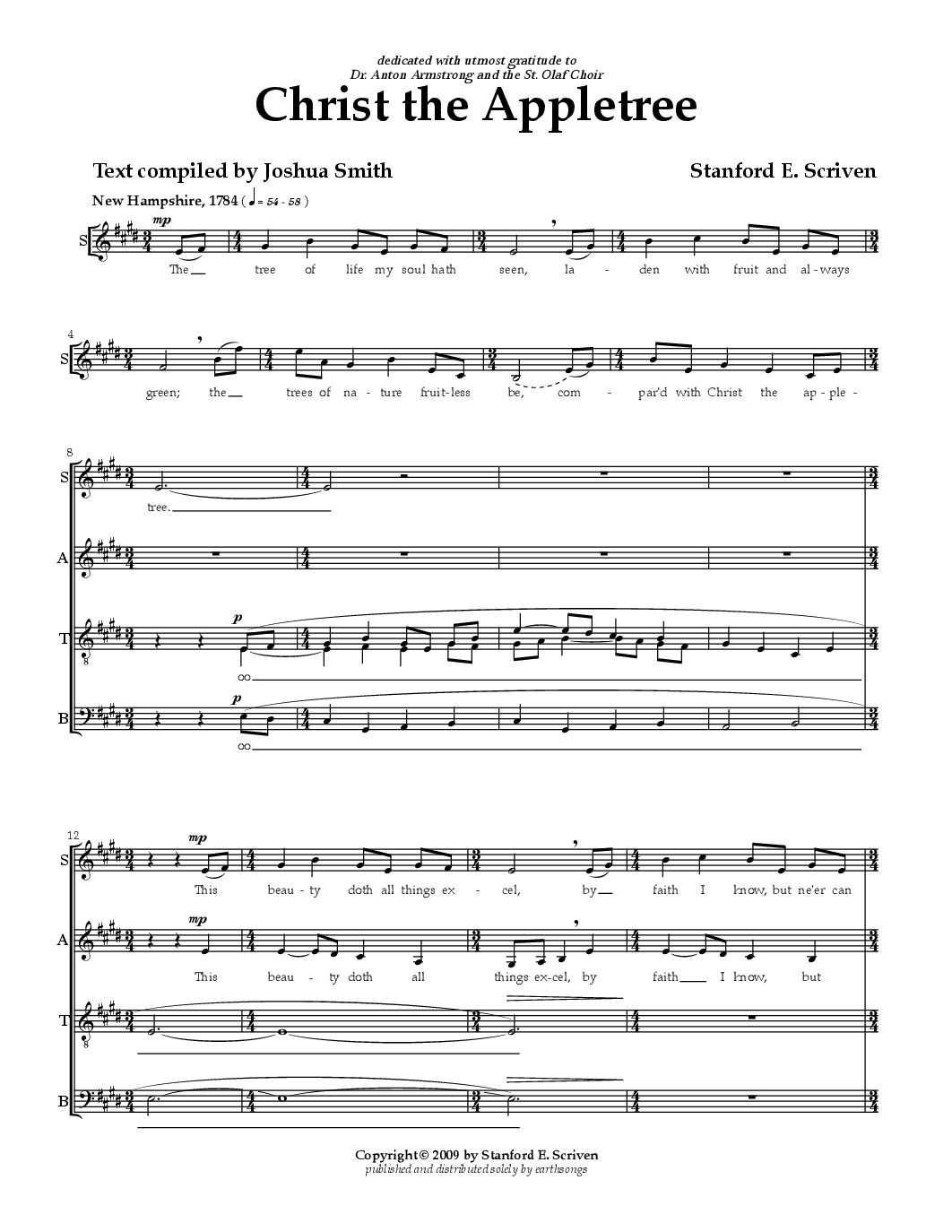 This setting is rooted in the simple spirit of the text, in which the author depicts Christ in a familiar light–that of the unwavering apple tree, a symbol of strength and abundant life.