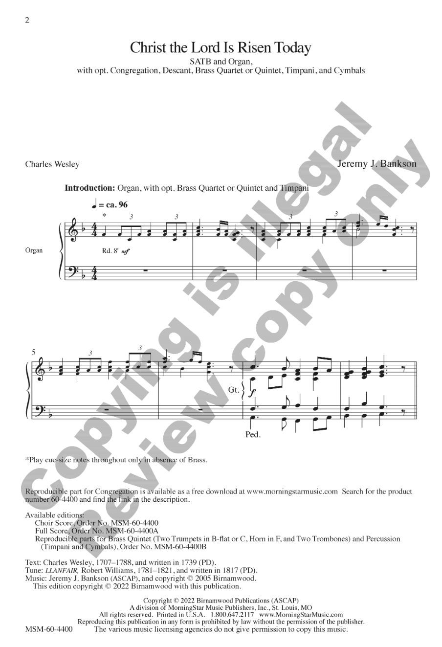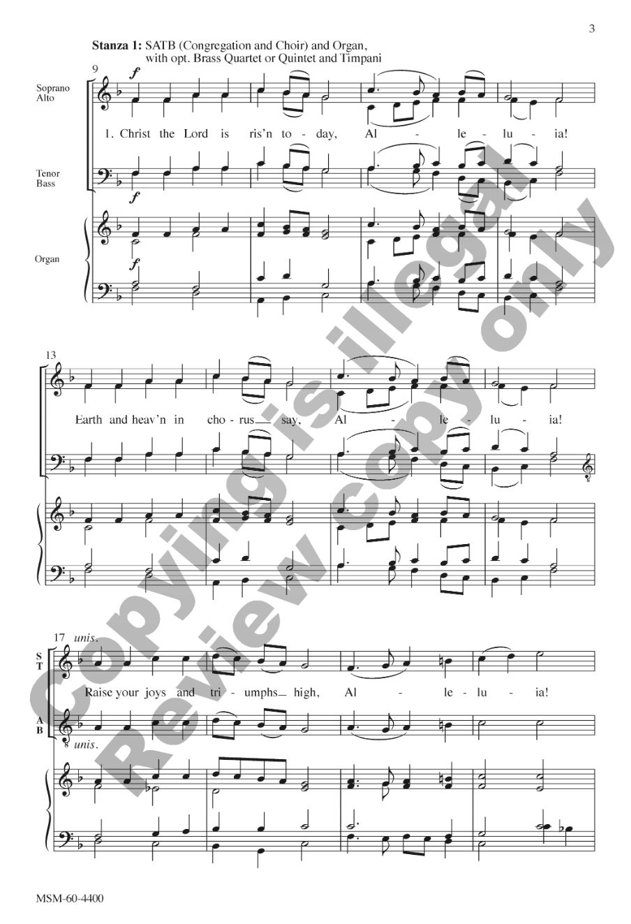 A brilliant brass fanfare introduces the festive melody associated with this great Easter text. Optional congregational participation makes this a useful and exciting Easter piece.