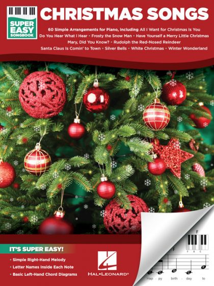 It's super easy! This series features accessible arrangements for piano, with simple right-hand melody, letter names inside each note, and basic left-hand chord diagrams. This edition includes 60 holiday favorites: All I Want for Christmas Is You • Blue Christmas • The Christmas Song (Chestnuts Roasting on an Open Fire) • Do You Hear What I Hear • Frosty the Snow Man • Grandma Got Run over by a Reindeer • Have Yourself a Merry Little Christmas • I Want a Hippopotamus for Christmas (Hippo the Hero) • Jingle Bell Rock • Little Saint Nick • Mary, Did You Know? • Pretty Paper • Rudolph the Red-Nosed Reindeer • Santa Claus Is Comin' to Town • Silver Bells • White Christmas • Winter Wonderland • and more.