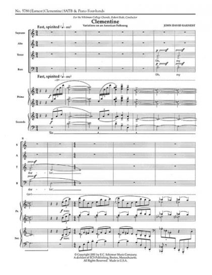 Commissioned by the Whitman College Chorale, Robert Bode, Conductor. This piece was included in the 2001 Southwest Michigan Choral Festival sponsored by Western Michigan University in Kalamazoo where it was performed simultaneously by around forty choirs (approximately 1800 people).