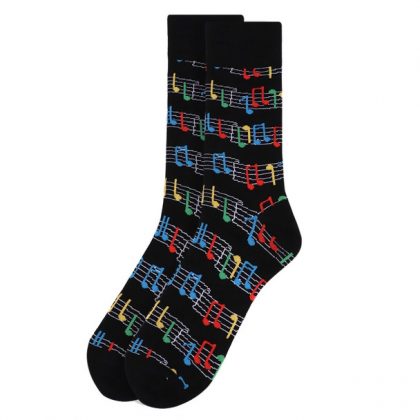 Every melody-lover needs a pair of these Men's Colorful Music Staff Socks. Impress your friends with these fashionably designed bright multi-colored and black socks that will take your wardrobe to the next level. These eye-catching calf-length socks are sure to make a statement, no matter the occasion!