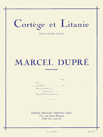 This version of Cortege and Litanie by Marcel Dupré was written for organ. For upper intermediate players, this 8 page composition is written with 4 sharps and includes the use of the pedals. The piece, initially written for a small orchestra in 1922, was created for a play. Dupré integrated it into one of his piano recitals and was later asked to arrange it for other instruments. These scores therefore exist also arranged for piano, orchestra (in 4 and 16) and for the conductor. In terms of composition, the piece is divided into two: “Cortege,” which title describes a solemn procession, begins in E major and lasts twice as long as the introductory theme; and “Litanie,” which is describing the prayer sung during a procession and which follows the “Cortege” part to then be joined by it. Marcel Dupré is a French composer and virtuoso organist who won the Prix de Rome in 1914. He became famous when he played the work of Bach in its totality from memory in 1920. He later became the professor of many renowned students at the Paris Conservatoire such as Messiaen, Langlais and Cochereau among others.