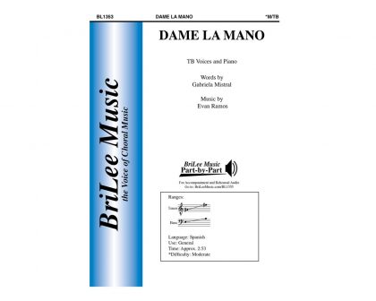 Dame La Mano, composed by Evan Ramos for tenor-bass choir, draws its gentle spirit from a poem by Gabriela Mistral, the first Latin-American author to receive the Nobel Prize in Literature. Mistral’s lines invite us to join hands, dance, and become one in love and hope, transcending names and boundaries. This setting captures the poem’s lyrical simplicity and its tender, human embrace, guiding singers through warm harmonies and flowing phrases. Ideal for ensembles seeking heartfelt expression, Dame La Mano offers a moving tribute to Mistral’s enduring voice and her vision of unity and grace.