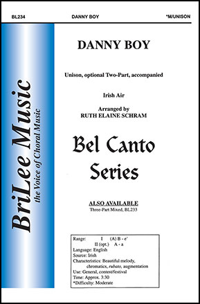 This Irish air, with its gorgeous melody and emotional text, has become a favorite of singers and audiences worldwide. In this setting, fresh harmonic colors, a supportive accompaniment, and tastefully handled dynamics enhance the beauty. A superlative venue for expressive singing, this arrangement will provide a warm musical experience and a stellar moment in your concert. Also available as 3 Part Mixed (BL233)