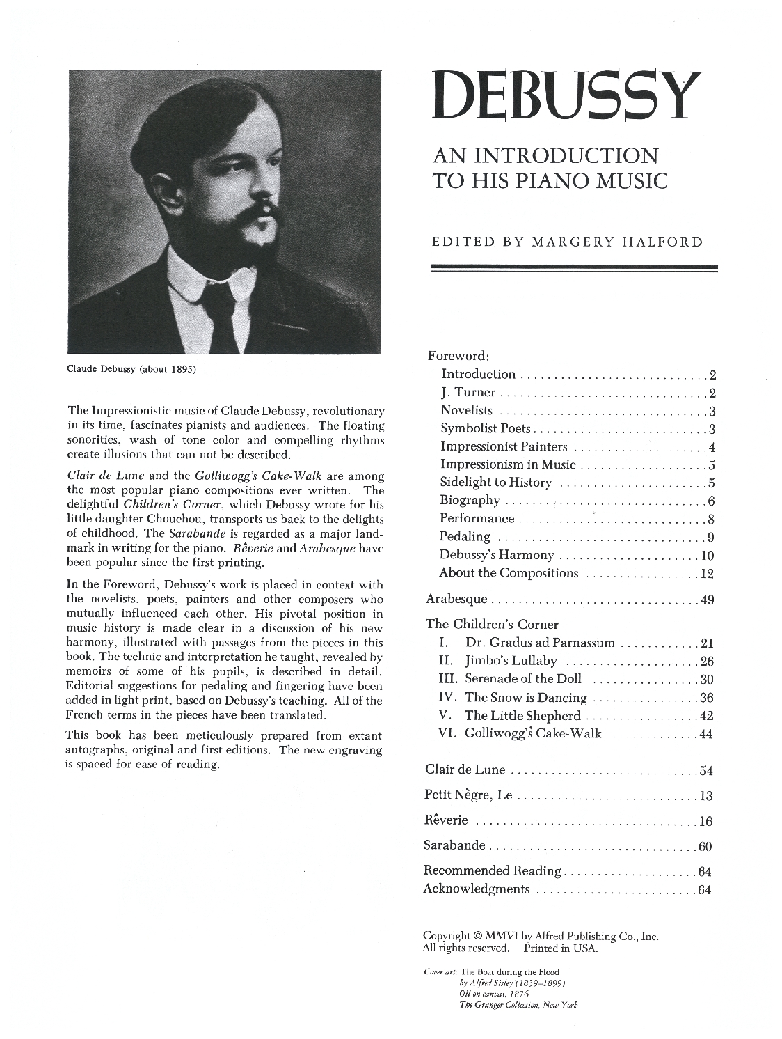 This collection of Debussy's popular intermediate pieces includes “Clair de lune,” “Reverie,” “Le petit nègre,” the complete “Children's Corner Suite” and other works. The introductory pages discuss symbolist poetry, French Impressionist painters and Debussy's musical style. A variety of photographs taken throughout the composer's life are also included.