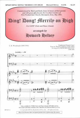 Ding! Dong! Merrily on High joins the distinctive list of Mr. Helvey's superb carol arrangements with 4-hand accompaniment. This latest addition literally sparkles with joy. By constantly varying harmonization, pianistic texture and part writing, he takes a well-known Christmas carol and helps us hear it as never before. Don't deny two capable pianists this much fun. They'll thank you for it!