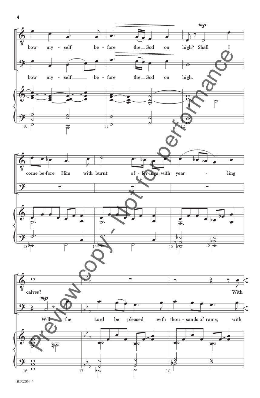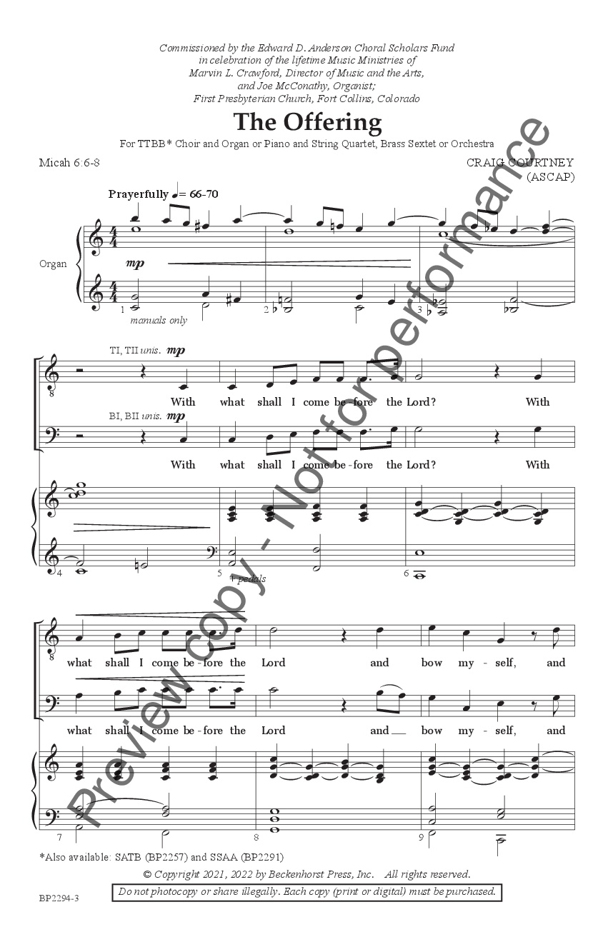 This regal, stately second movement of Craig Courtney’s trilogy, Divine Encounter, is based on Micah 6:6-8. As we partake of God's bounty, our gratitude urges us to offer ourselves as living sacrifices to serve God and people alike. Suitable for use on its own, or as part of the three-movement work; effective in both worship and concert settings.