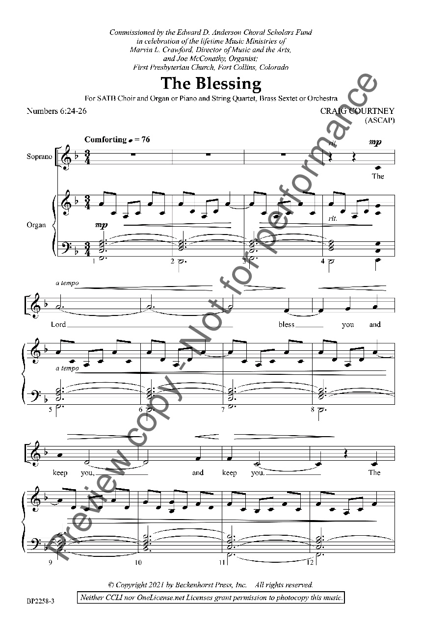 The third movement of Craig Courtney’s trilogy, Divine Encounter, The Blessing is a newly-composed benediction based on Numbers 6:24-26. As Jesus blessed and multiplied the fish and bread, so God blesses the offering we bring to Him. The melody, which is one large-scale arc, is stated twice, creating a simple, sincere message of peace and rest. Suitable for use on its own, or as part of the three-movement work; effective in both worship and concert settings.