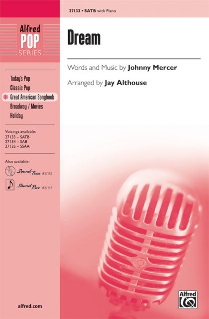 Singer Mel Tormé called “Dream” “the national anthem for group singers.” It's been recorded by everyone from Frank Sinatra to George Shearing, and is the quintessential vocal group number. The vocal lines are easy, so it's a great piece to work on tone and blend…for any ensemble of any size. Easy piano accompaniment.