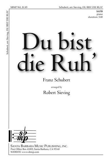 A romantic song composed by Schubert for solo voice is now tastefully arranged for mixed voices. It can be sung in the original German or using the excellent English version. The elegant accompaniment is supportive of the voices throughout.