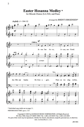 An Easter medley written for children, mixed chorus (SATB) and piano, with the following Primary pieces: