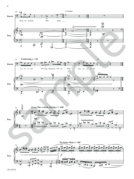 Composed for Soprano and Baritone with an instrumental sextet, Ellen West brings the audience into the lives of psychiatrist Ludwig Binswanger and his patient, Ellen West, who throughout her life filled journals and wrote poetry. Frank Bidart’s text juxtaposes the clinical observations of Binswanger with fictitious entries of Ellen’s writing which shine light on her deeply personal struggles. This one act tour-de-force delves into the emotional, psychological, and physical challenges of a woman struggling with perceptions of her body, her troubling relationship with food, and the world closing in around her.
