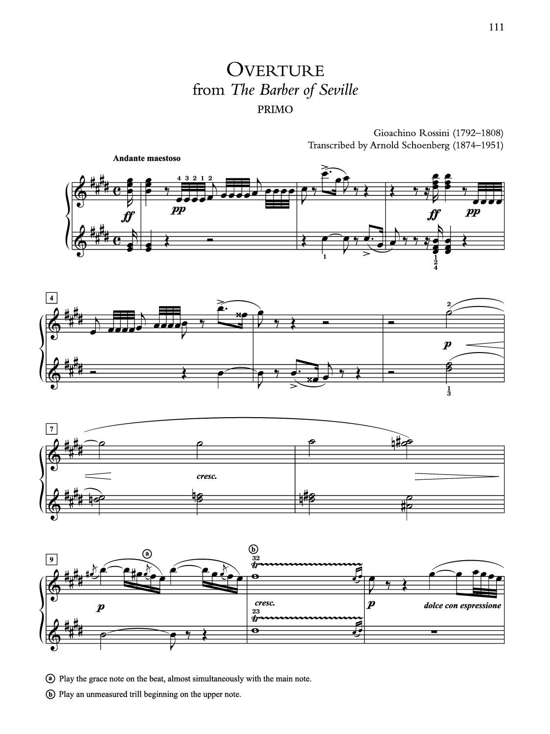 • Overture (from The Barber of Seville) (by Gioachino Rossini, trans. Schoenberg)