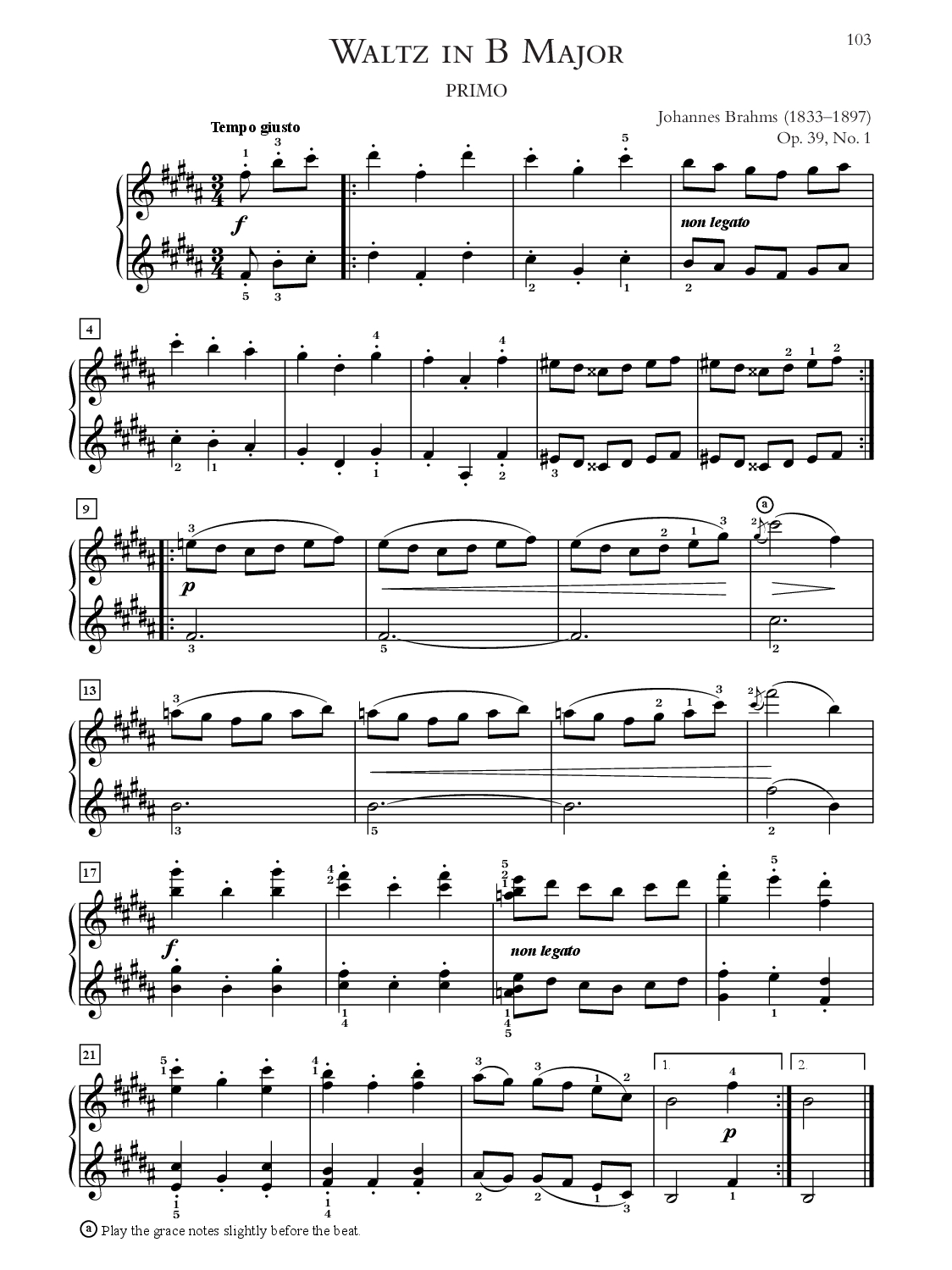 • Waltz in B Major, Op. 39, No. 1 (by Johannes Brahms)