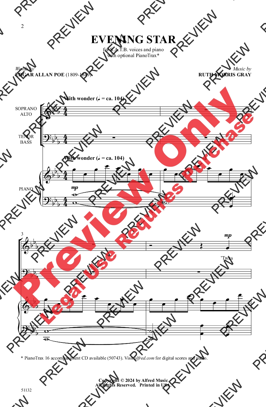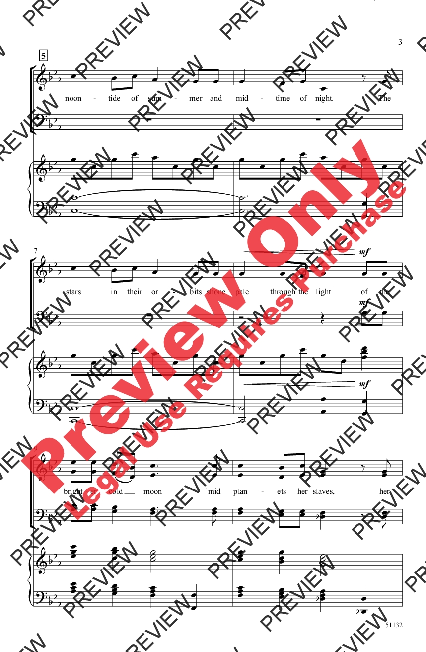 A meditation on the restorative power of nature, this Edgar Allan Poe poem compares a proud star with the cold moon. Colorful homophonic harmonies and a brief canon beam with wonder in this dramatic mixed voice feature. Excellent for exploring legato singing, choral intonation, musical expression, and text interpretation.