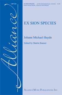 EX SION SPECIES (MH 443) was composed on August 28, 1787, in Salzburg, Austria (the trumpet parts were added in 1796). This edition is based upon the autograph score, preserved in the music archive of the Bayerische Staatsbibliothek in Munich: Mus. mss. 336. The score is laid out over eight pages, eight staves per page. The first page of the autograph score reads: